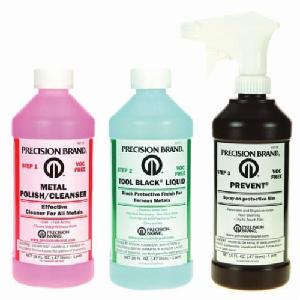 - Fast, inexpensive alternative to black oxide. Imparts a tough, dull black protective finish to ferrous metal parts. Ideal for prototypes, repair parts and general machine work. The liquid solution is used on small immiscible parts. Should be used at room temperature as a cold application. Precision Brand® Tool Black® liquid kit contains one pint each of Tool Black® liquid, Prevent® and metal polish/cleanser. One pint of Tool Black® liquid covers 25 to 35 sq-ft, however coverage varies with application technique. Tool Black® products cannot be shipped via air transportation. Precision Brand® Tool Black® 1 Tool Black Kit, Liquid Form, 25 to 30 sq-ft Coverage, Chemical Composition: Water, Nitric Acid and Hydrochloric Acid, 0.85 pH, Odorless Odor/Scent
